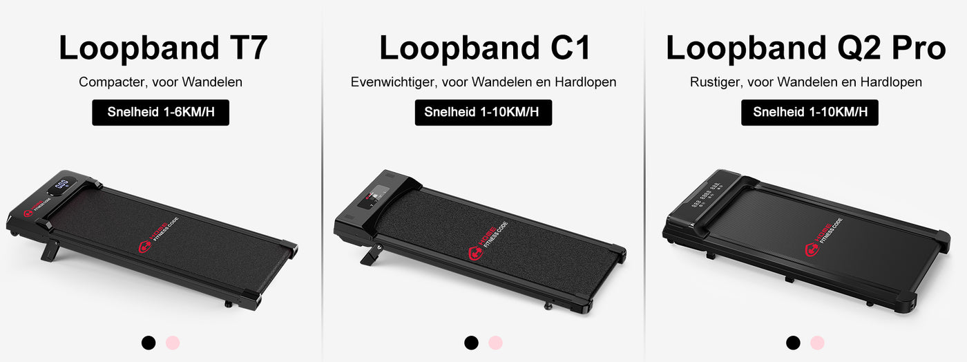 | Titel | Loopband T7, Snelheid 1-6KM/H, 5% Handmatige Helling | Loopband C1, Snelheid 1-10KM/H, 5% Handmatige Helling | Loopband Q2 Pro, Snelheid 1-10KM/H | Loopband Y1 met 0-12% Automatische Helling, Snelheid 1-10 KM/H |