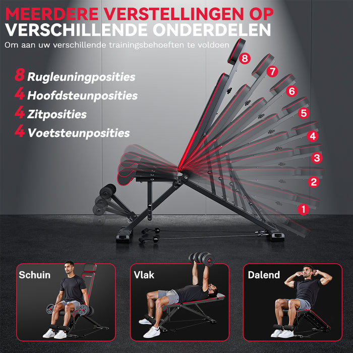 Met 8 rugleuningposities, 4 zitniveaus, 4 hoofdsteun- en 4 voetsteunverstellingen kun je je training aanpassen aan specifieke spiergroepen.