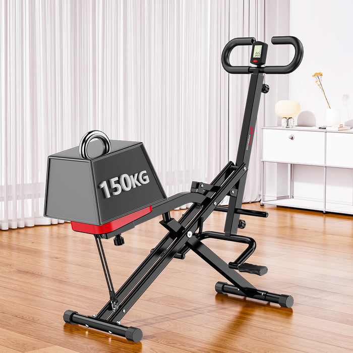Het maximale draagvermogen van deze squat assist machine is 150 kg.