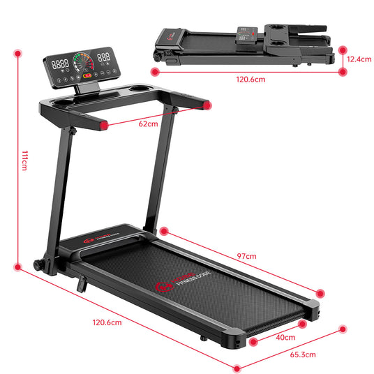 Het opvouwbare ontwerp met geïntegreerde transportwielen zorgt voor eenvoudige opslag wanneer je de loopband niet gebruikt en een soepele verplaatsing.